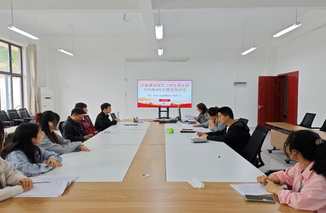 本网讯(大数据学院 文/图 赵金美)2025年4月30日,大数据学院第二学生党支部在睿知楼510会议室组织开展“深入贯彻中央八项规定精神学习教育”主题党日。支部书记孙秋韵主持,支部全体党员参加学习。