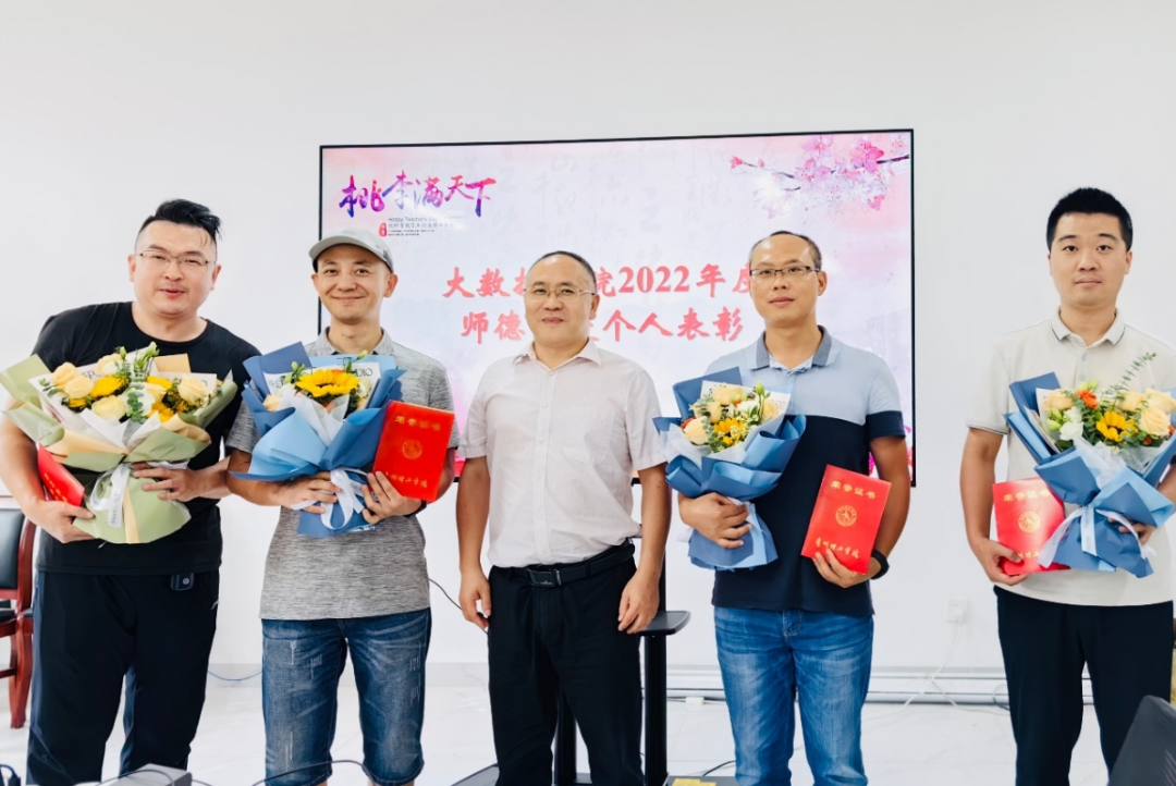 本网讯(文/图 张婧慧)9月8日,第39个教师节前夕,为激励教师牢固树立“躬耕教坛·强国有我”的理念和抱负,大数据学院举办2022年度师德先进个人和年度考核先进个人表彰仪式。院领导张艳、肖迎群、武斌、杨仁增、王喜宾及全体教职工、企业教职工参加,党总支书记张艳主持活动。
