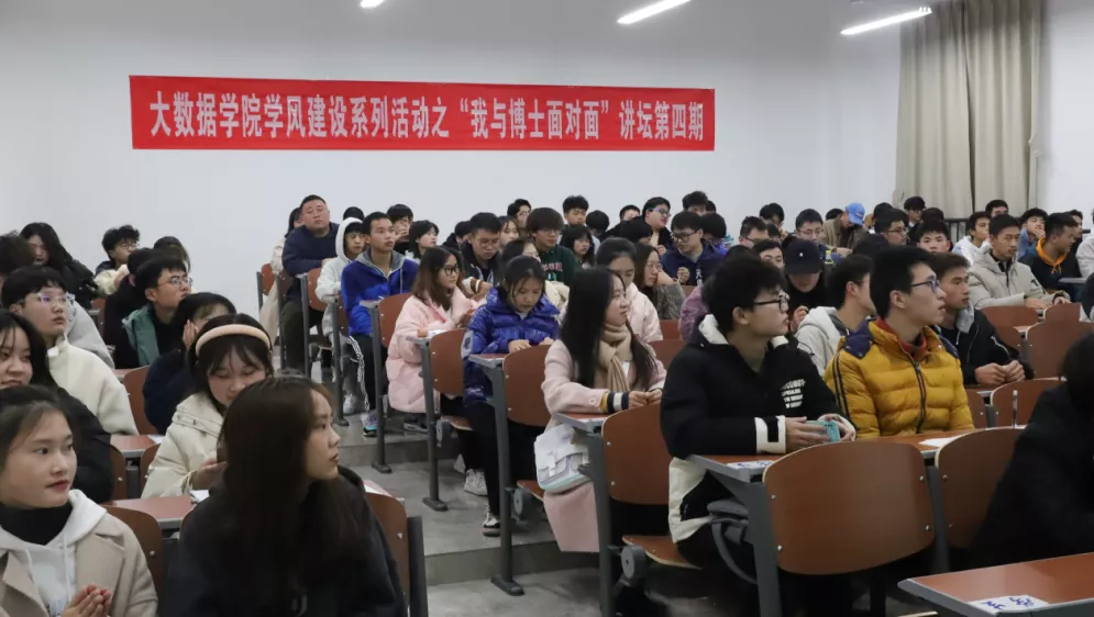 本网讯(大数据学院 文/吴明鸣 图/娄云洋)2021年12月2日晚,大数据学院杨楠博士应邀做客“我与博士面对面”讲坛第四期,在贵安校区开物楼G1108教室与同学们面对面交流。