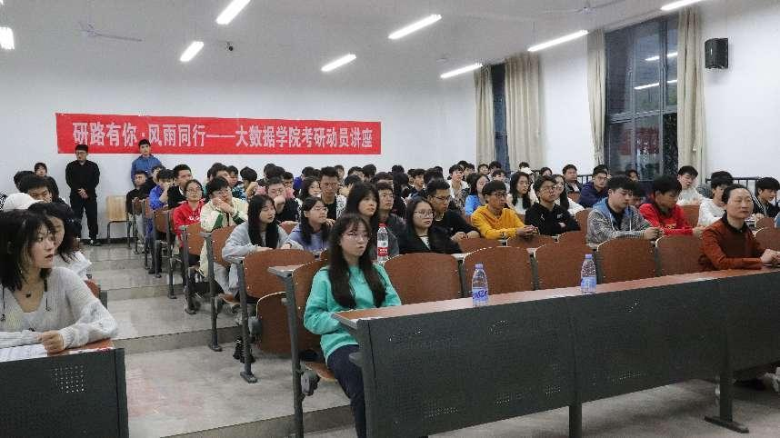 本网讯(文/陈发云 图/吴明鸣)2022年3月17日晚,大数据学院在贵安校区G1108教室举行主题为“研路有你,风雨同行”的考研动员大会。党总支书记张艳、党总支副书记武斌出席大会,学院辅导员陈盼、孙秋韵、李刚以及研究生笔试取得优异成绩的大数据181班王语涵同学和百余名大数据学子一同参加大会。
