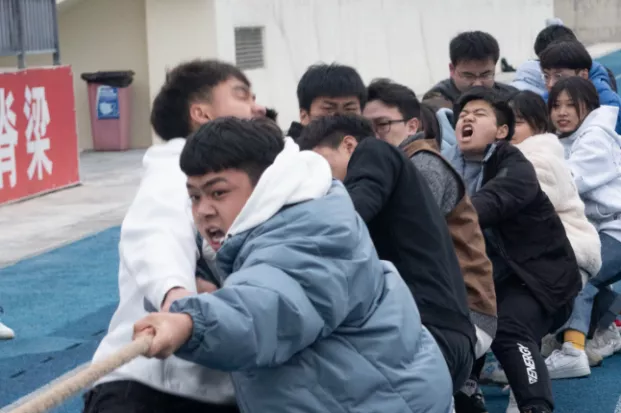 11月13日,在简短的开幕式后,拔河比赛正式开始。初冬的天气透着些许寒意,各班参赛队伍却气势如虹。队员们在赛场上奋力拼搏,挥洒汗水,口号声、加油声此起彼伏,整个比赛场面既激烈又温馨。
