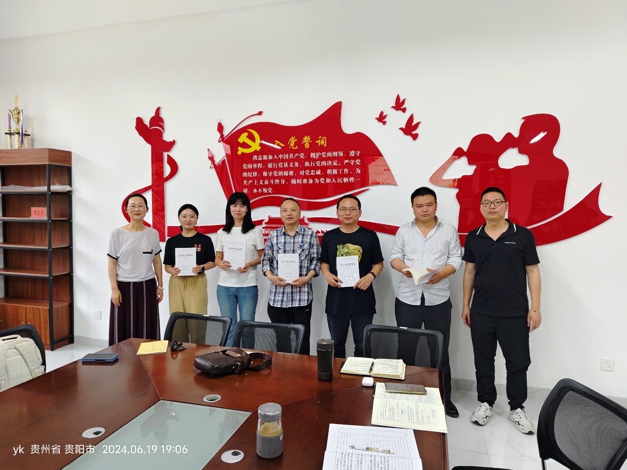 第二季度入党的五位同志集体过政治生日。与会党员重温入党誓词。