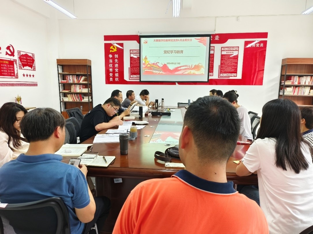 本网讯(大数据学院 文/图 王喜宾)6月19日下午,大数据学院教师党支部在党员活动室举行“党纪学习教育”主题党日。支部书记杨楠主持,支部党员参加会议。
