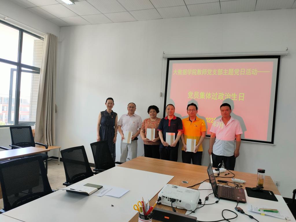 本网讯(大数据学院 王喜宾)2022年7月15日下午,大数据学院教师党支部在学院会议室举行 “重温入党誓词,弘扬伟大建党精神”主题党日活动。支部书记杨楠主持,院领导张艳、肖迎群、武斌及教师支部党员参加主题党日活动。