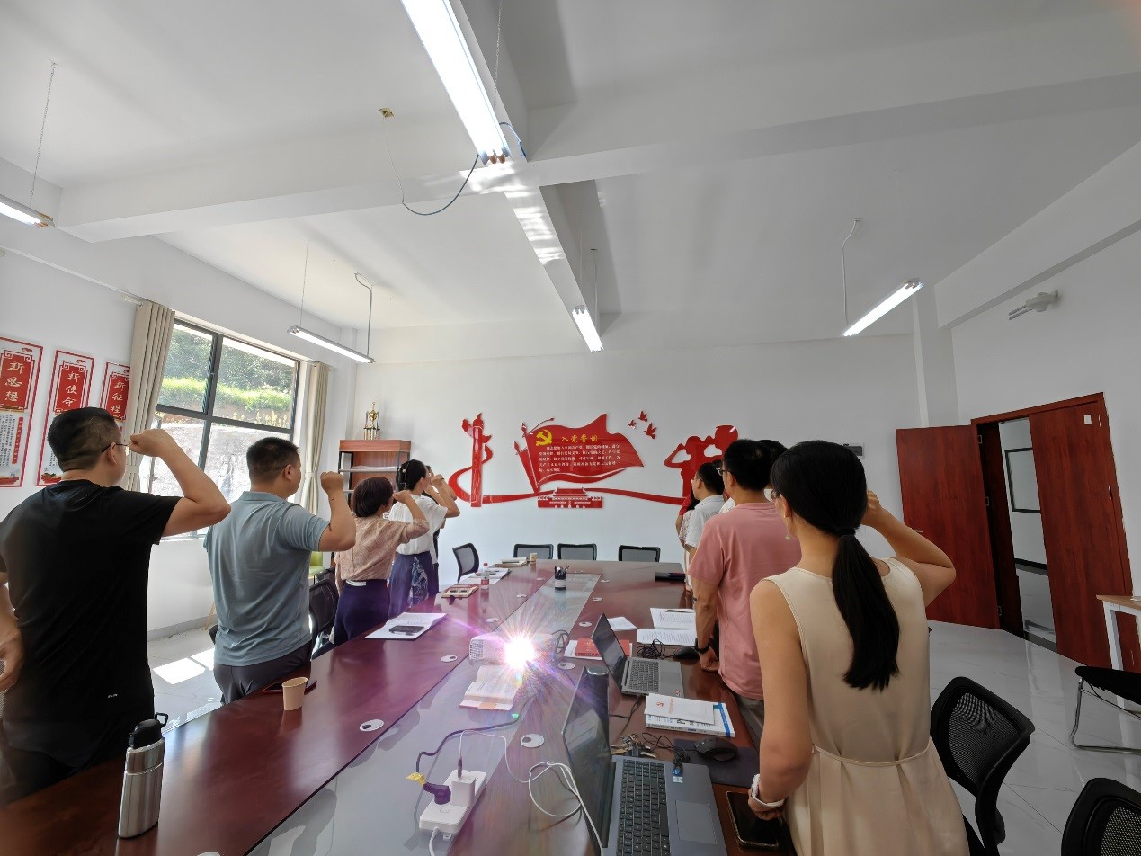 杨楠同志总结了教师支部党纪学习教育工作。三季度入党的同志集体过政治生日,支部党员重温入党誓词。
