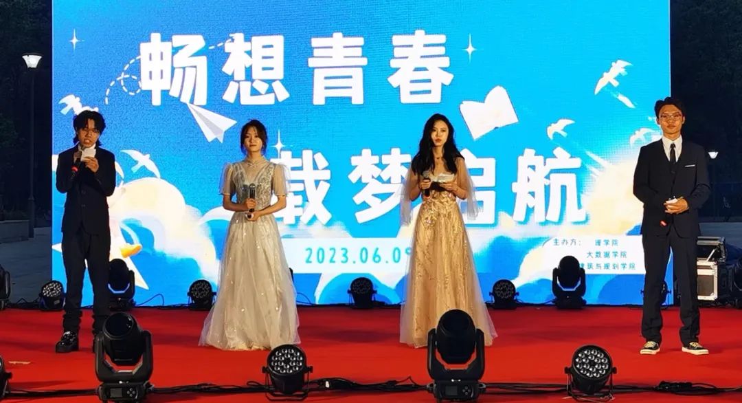 本网讯(文/胡伊琳 图/杨涛 李俊峰)6月9日晚,大数据学院、理学院、建筑与城市规划学院联合举办的“畅想青春 载梦起航”2023年毕业晚会在贵安校区举行。院领导出席晚会。学子们用诚挚的话语、温暖的歌曲和律动的舞蹈向即将毕业的学长学姐们送上美好祝福,期待他们鲲鹏万里、前程似锦。
