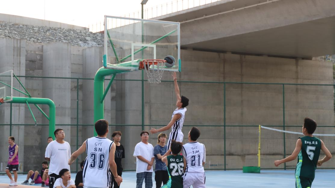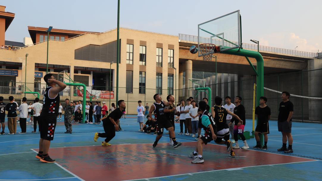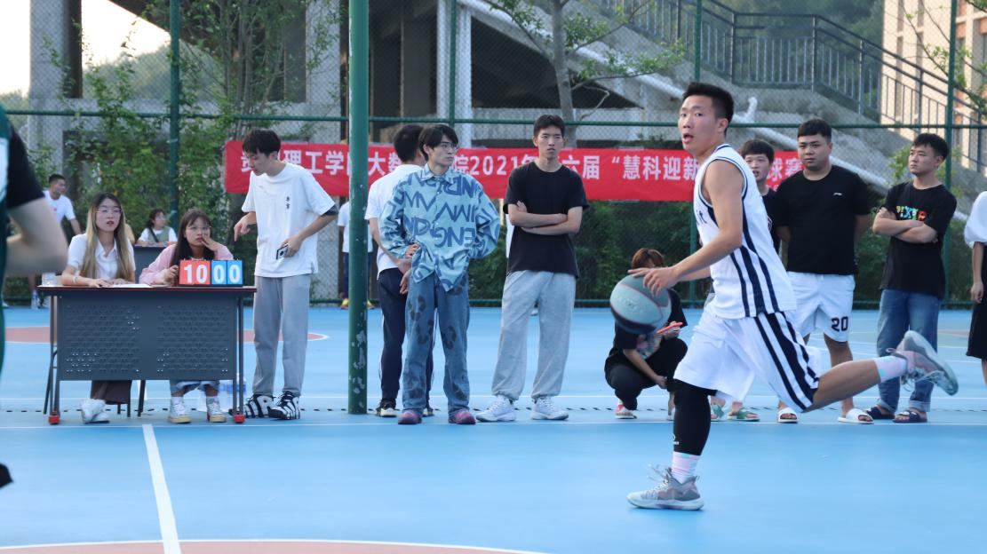 “迎新杯”篮球赛自2021年9月13开赛,当晚迎来决赛。双方队员你来我往,激烈争抢,整场比赛高潮不断。裁判员秉公执法,严肃认真判决好每一个球,保障了比赛的公平公正。