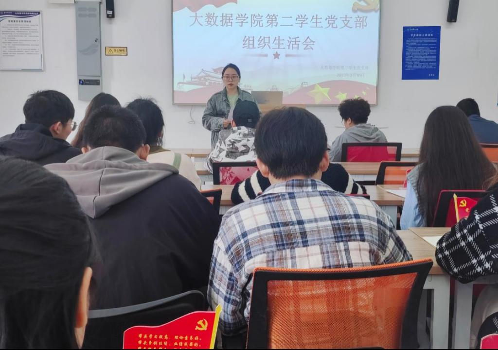 本网讯(大数据学院 文/孙秋韵 图/鄢鹏)2023年3月16日下午,大数据学院第二学生党支部在知行楼3301教室召开2022年度组织生活会及开展民主评议党员。本次会议由党支部书记孙秋韵主持,支部全体党员参加。