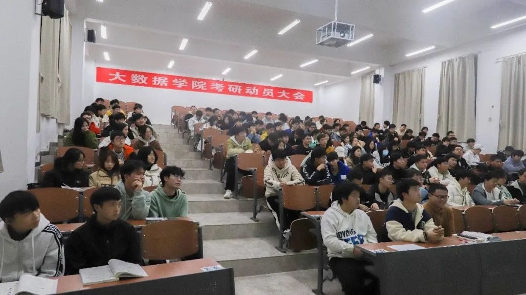 本网讯(文/杨丹妮 图/吴承炫)为进一步激发学生考研热情,引导学生认清当前考研形势,合理选择考研目标,3月28日晚,大数据学院在贵安校区G1109教室召开考研动员大会。党总支书记张艳、副书记武斌、年级辅导员及200余名有考研意向的学子参加动员会。
