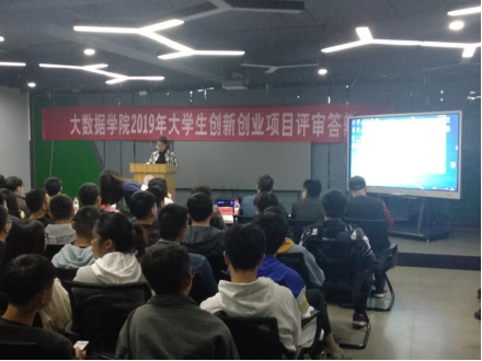 2019年4月15日晚,贵州理工学院大数据学院在大学生创新创业中心举办了大学生创新创业项目评审答辩会。学院2017级、2018级共有近300余名学生60支队伍参加评审答辩,学院党总支书记唐丽华、院长肖迎群、党总支副书记史明华以及杨仁增等6名学院老师、慧科集团企业教师张德跃参加了本次评审会。