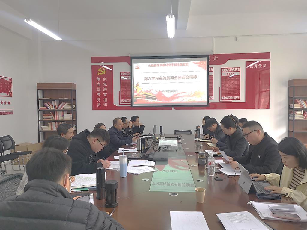 本网讯(大数据学院 文/图 王喜宾)2025年3月20日下午,大数据学院教师党支部在学院党员活动室一体化开展“深入学习宣传贯彻全国两会精神”主题党日暨2024年度组织生活会前学习。支部书记杨楠主持,支部党员参加会议。