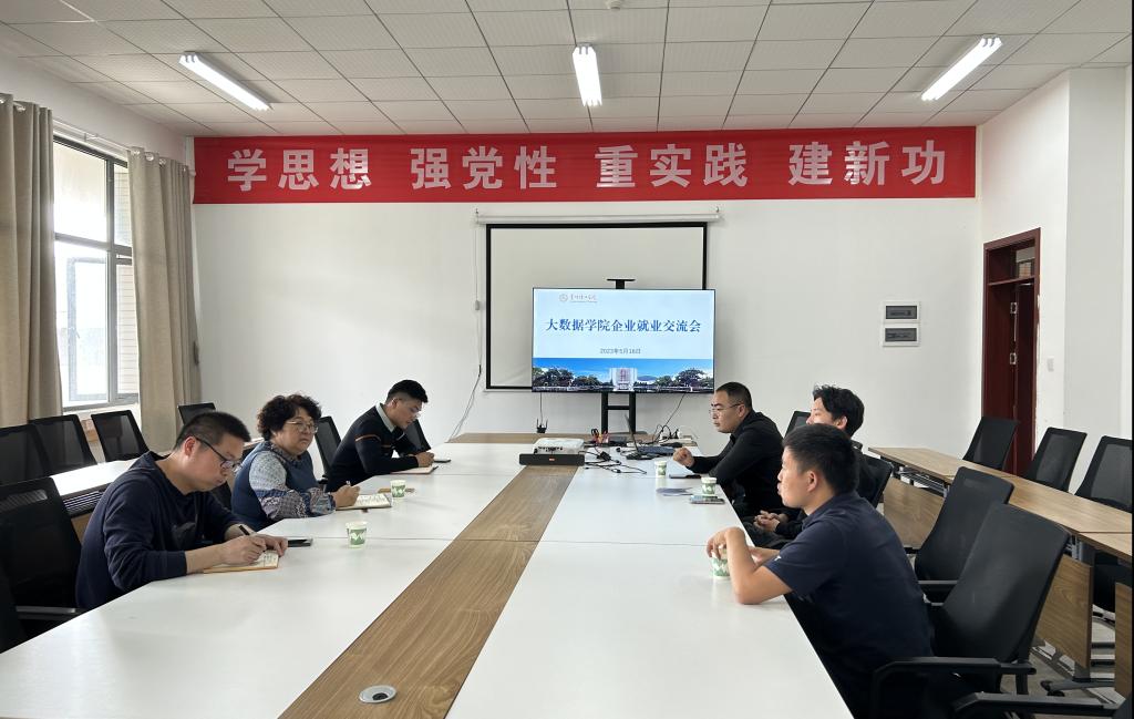 本网讯(慧科教育集团 文/李虎 图/黄华脆)5月16日上午,贵州仁泰科技有限公司罗辉经理,贵州李选文化传媒刘旭东经理到访大数据学院,围绕学生实习实训和就业,与副书记武斌、副院长王喜宾、企业副院长李虎座谈交流。