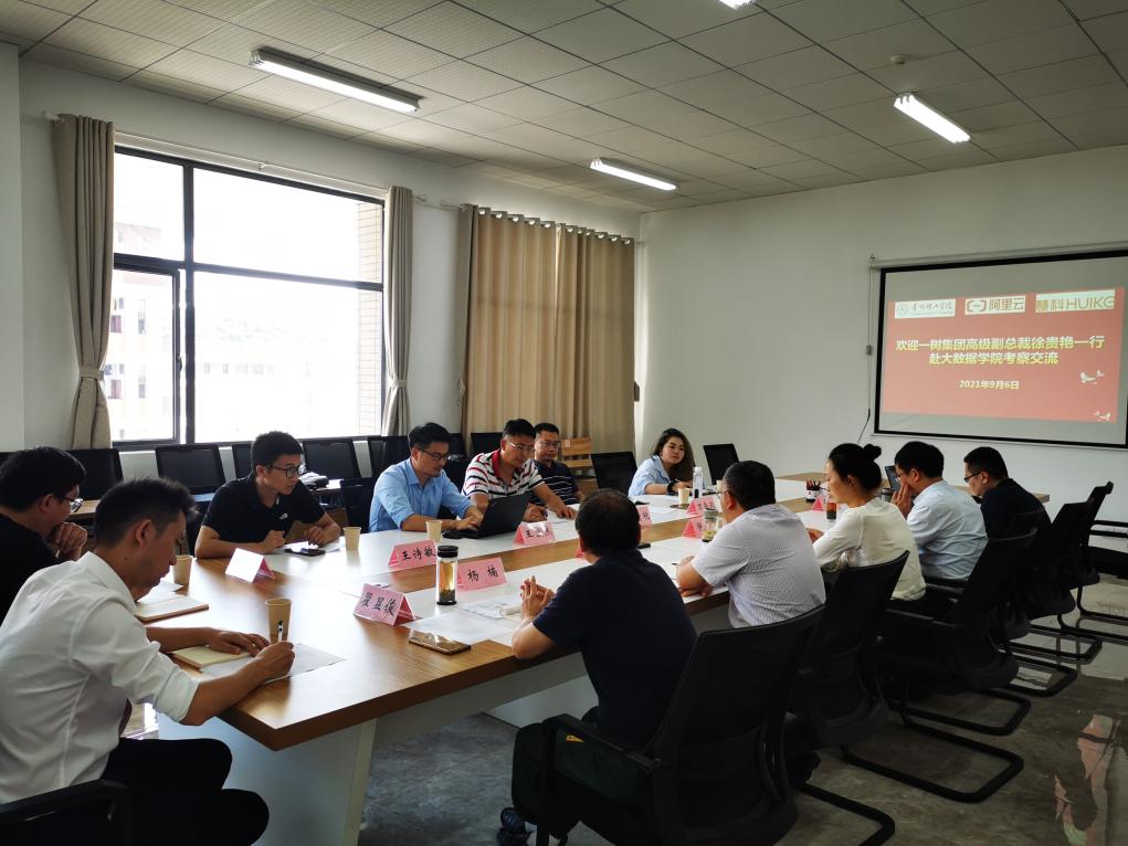 2021年9月9日,应一树药业邀请,大数据学院党总支书记张艳、院长肖迎群一行5人前往位于双龙航空港经济区的一树大厦进行实地考察。阿里云计算有限公司贵州区域教育行业总监、慧科教育科技集团负责人一同前往。