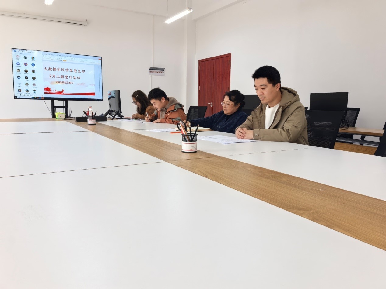 本网讯(大数据学院 文/图 罗鑫)2025年2月28日,我院第一、第二学生党支部在睿知楼510会议室线下线上联合开展“学习党的自我革命精神,推动工作学习提质增效”主题党日。第二支部书记孙秋韵主持,全体党员参加。