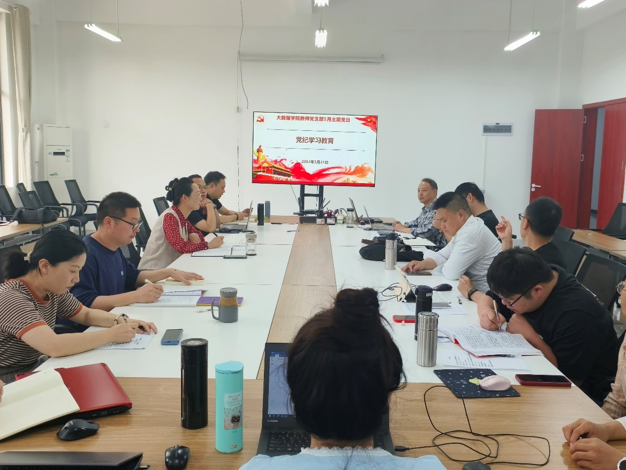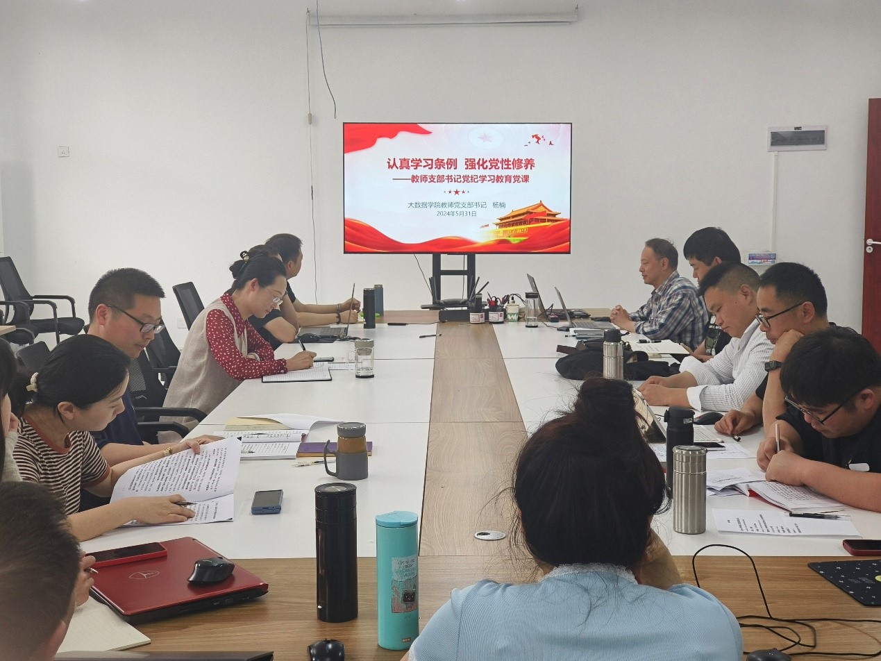 本网讯(大数据学院 文/图 王喜宾)5月31日下午,大数据学院教师党支部在510会议室开展5月党纪学习教育主题党日。支部书记杨楠主持,支部党员参加会议。