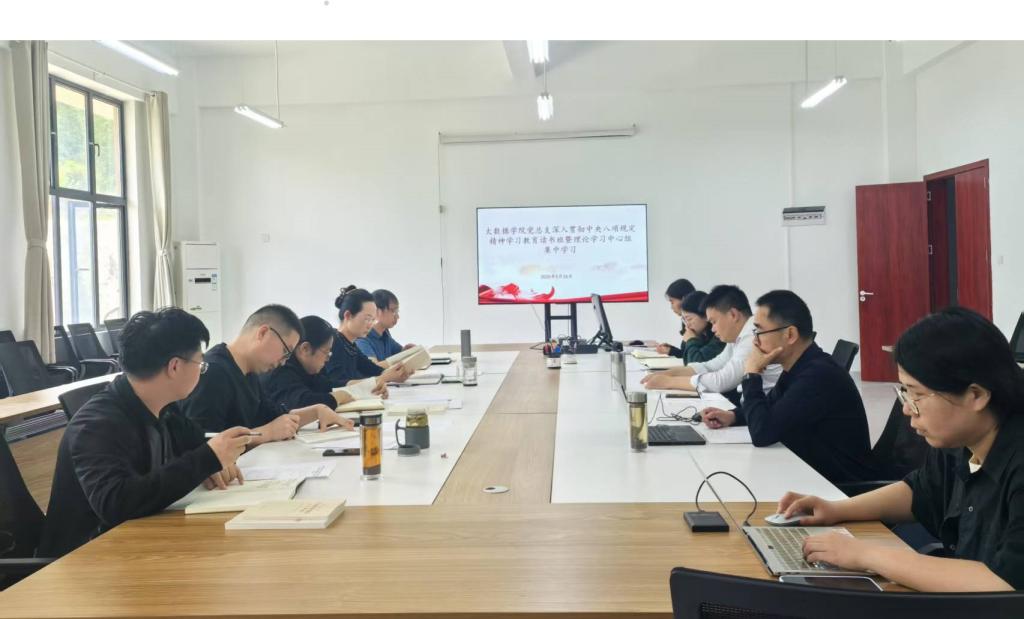 本网讯(大数据学院 文/图 潘红锐)2025年5月26日下午,大数据学院党总支在睿知楼510会议室召开深入贯彻中央八项规定精神学习教育读书班暨理论学习中心组第三次集中学习会议。党总支书记张艳主持,党总支委员、处级组织员、师生党支部书记、各科室、教研室、信息实验中心负责人参加。