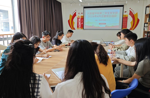 本网讯(大数据学院 文/魏良月 图/赵金美)4月28日,大数据学院第二学生党支部在“数智先锋”一站式学生社区党员活动室开展“党纪学习教育”主题党日。支部书记孙秋韵主持,支部全体党员参加,发展对象列席。