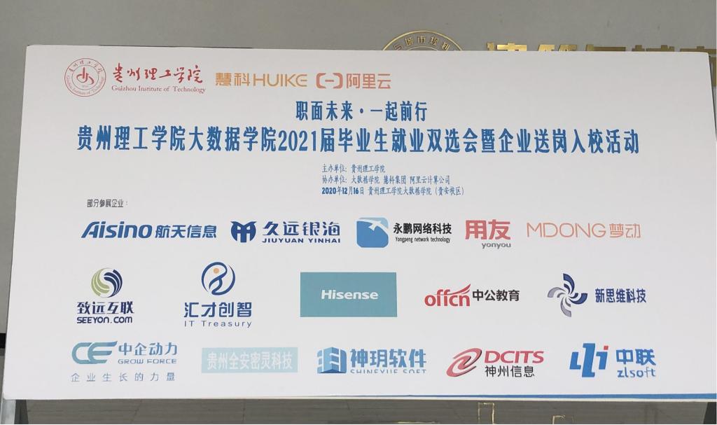 为拓宽我院2021届毕业生就业渠道,有效应对就业压力,促进学生高质量就业。在做好疫情防控常态化工作的同时,大数据学院联合慧科集团、阿里云计算公司,整合校企资源,于12月16日上午在贵安校区知行楼一楼举办了“职面未来·一起前行”贵州理工学院大会数据学院2021届毕业生就业双选会暨企业送岗入校活动。