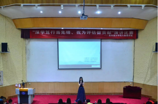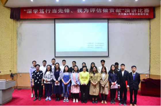 (图片:贺镜兆 审核:蒋昀瑶) 2019年4月8日晚19:00,大数据学院“深学笃行当先锋,我为评估做贡献”演讲比赛在逸夫小礼堂举行。