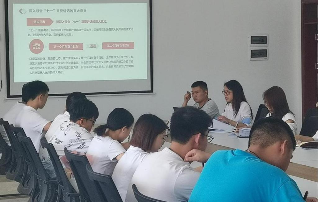 宣传委员孙秋韵同志领学《谌贻琴书记在贵州省庆祝中国共产党成立100周年大会上的讲话》,通过分享亲身经历讲述了在中国共产党的领导下,贵州省彻底撕掉千百年来的绝对贫困标签,实现后发赶超同步小康。与会同志一致认为,这一切离不开党中央的坚强领导和亲切关怀,离不开一代又一代共产党人团结带领全省各族干部群众艰苦奋斗、努力拼搏。