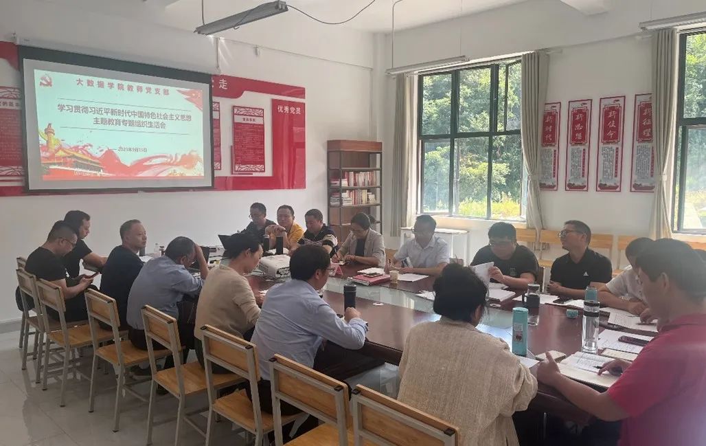本网讯(文/图 王喜宾)9月15日下午,大数据学院教师党支部在学院党员活动室召开学习贯彻习近平新时代中国特色社会主义思想主题教育专题组织生活会。校党委委员、副校长张开智列席会议,中国足球彩票:主题教育工作联系四组组长顾亚丽到会指导。支部书记杨楠主持会议,支部党员参加会议。