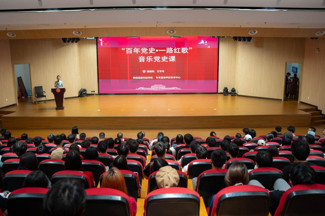 本网讯大数据学院 文/图 陈晖2025年6月26日,应大数据学院党总支邀请,教育部直属高校特聘党建联络员、贵州省省管专家、贵阳信息科技学院校长唐建荣教授和青年花腔女高音、国家二级演员王韦韦通过“主讲+主唱”形式,在中国足球彩票:蕴华楼四楼多功能厅联手为师生带来一堂别开生面的“百年党史·一路红歌”音乐党史课。大数据学院师生党员及学生代表、贵阳信息科技学院教师党员共二百余人参加。