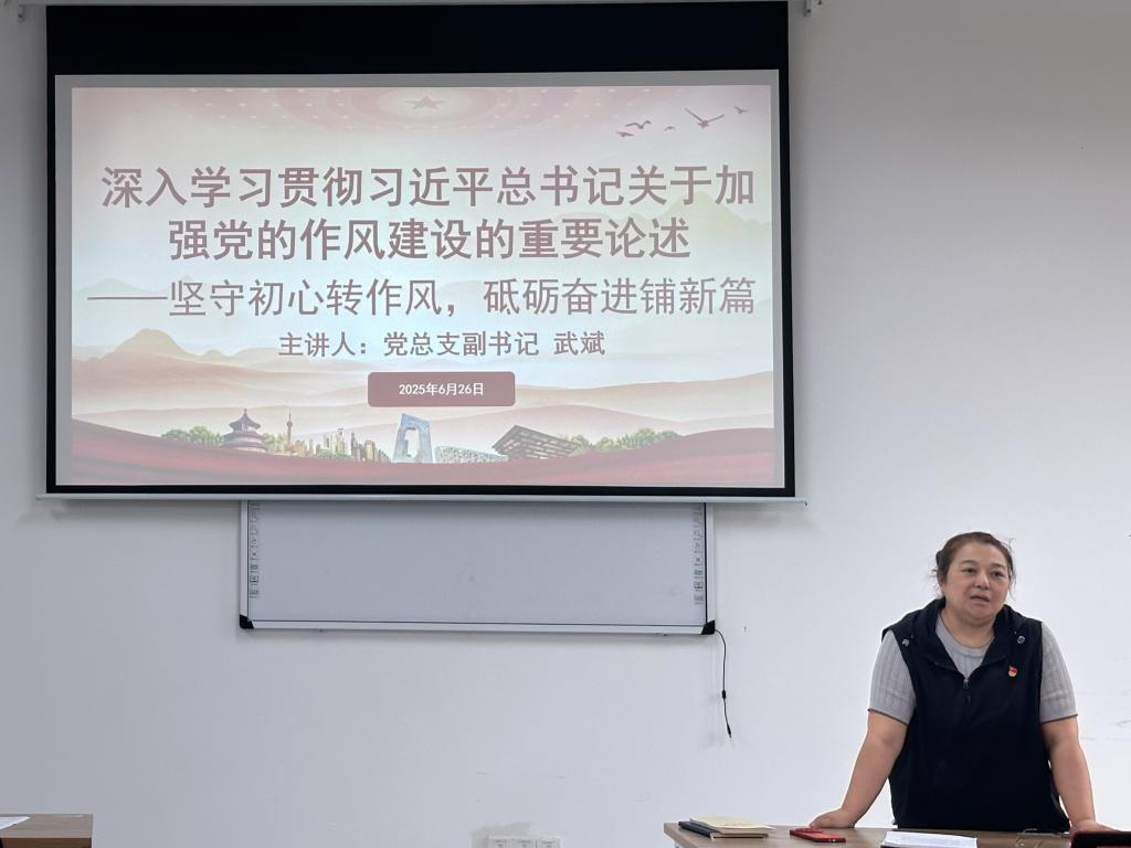 6月27日,党总支书记张艳以《以优良作风凝心聚力 推动学院高质量发展》为题,在学院510会议室面向教职工及学生党员代表讲授专题党课。