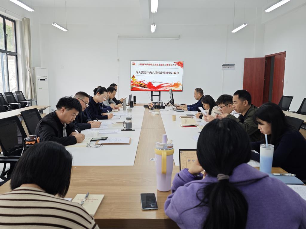 本网讯大数据学院 文/图 王喜宾)2025年4月24日下午,大数据学院教师党支部在睿知楼510会议室举行“深入贯彻中央八项规定精神学习教育”主题党日。支部书记杨楠同志主持,支部党员参加会议。