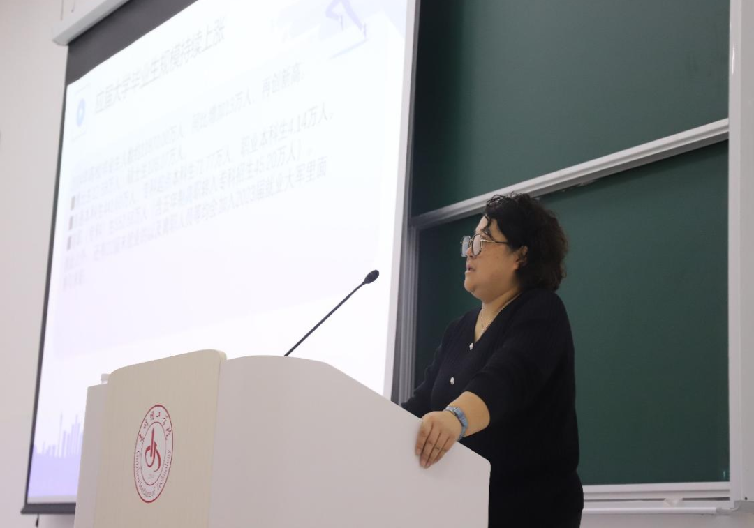 张艳书记在就业动员讲话中指出,就业光荣、啃老可耻,希望毕业生认清就业形势,明确就业目标,抢抓秋招黄金期,主动出击、拓宽渠道、珍惜机会,先就业后择业。求职过程中切勿眼高手低、盲目从众、好高骛远。同时鼓励毕业生积极充电加油,全方位提高就业竞争力。