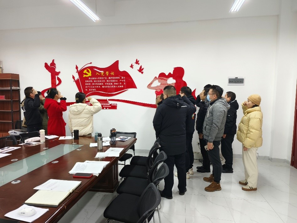 四季度入党的同志集体过政治生日,支部党员重温入党誓词。