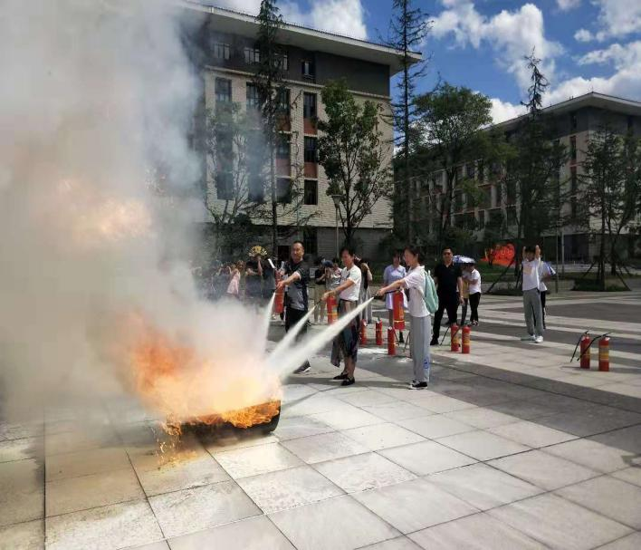 为进一步加强消防安全管理,增强师生消防安全意识,普及消防安全知识,提高火灾应急处置能力,2021年5月13日下午,在贵安校区开展消防安全知识培训和演练活动。贵安校区师生、贵安校区管委会人员、消防管理团队(消防安全员)、消防宣传员(网格员)、学校护校队人员、消防安全志愿者,及学校保安公司保安员、物业管理公司物管人员等共100余人参与了此次活动。