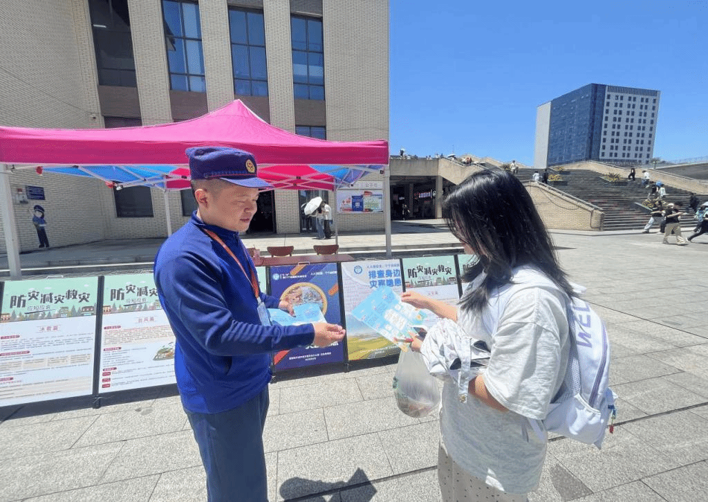 保卫工作部及安保相关工作人员分别对过往师生发放宣传手册,内容图文并茂,便于理解记忆。同时,工作人员耐心为师生答疑解惑,结合实际案例强调防灾减灾重要性。