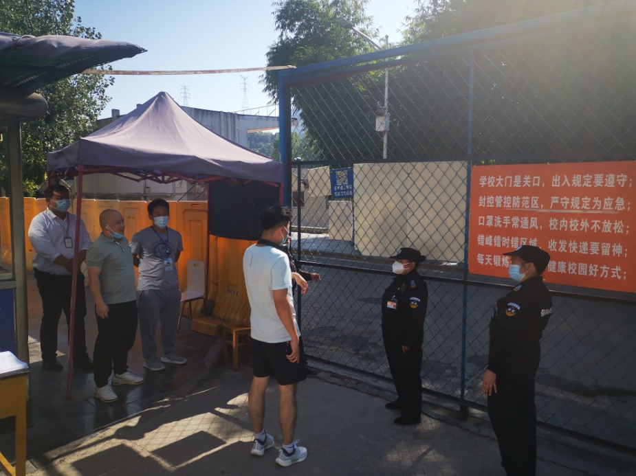 保卫处负责人每天巡查检查校园各岗位,督查保安人员和保卫干部的履职情况,强调按照最新防控管理规定,严查人员身份和健康信息,严控人员进出,严防人员翻墙,加强巡逻巡防,及时处理突发情况。