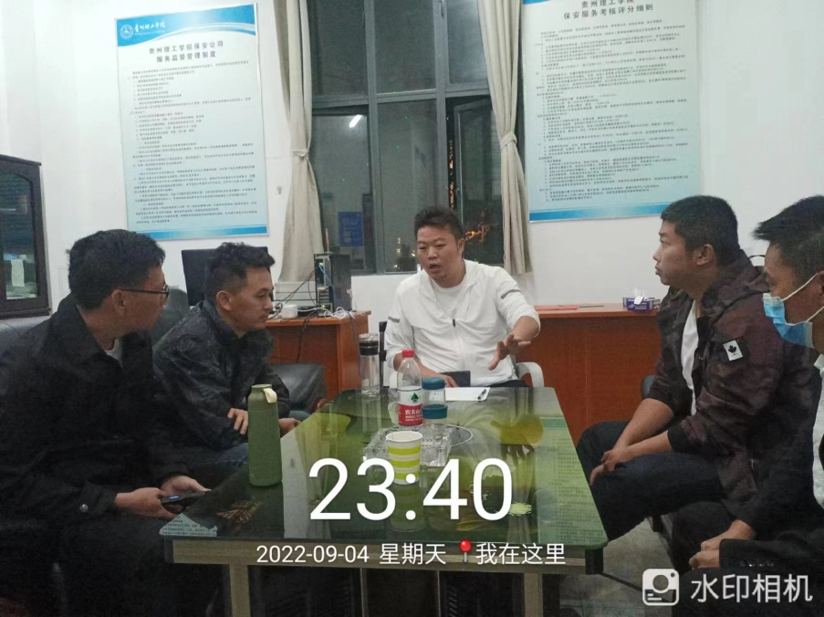 9月1日,贵阳出现疫情后,保卫处迅速作出安排部署,第一时间召开防控工作专题会,第一时间排查保卫干部和一线保安员健康信息,迅速落实相关管控措施。