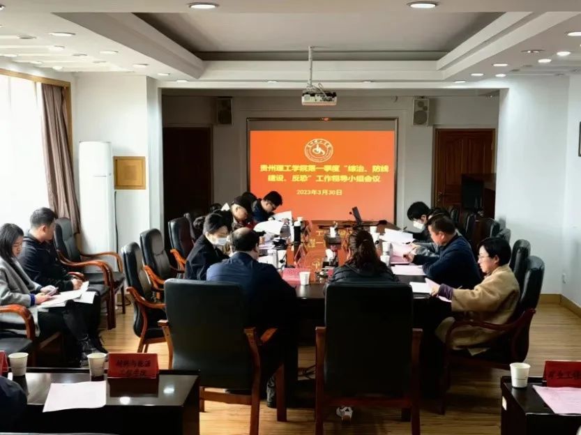 2023年3月30日上午,在行政楼五楼会议室,召开贵州理工学院第一季度“综治、防线建设、反恐”工作领导小组会议,校综治、防线建设和反恐三个工作领导小组各成员单位及相关学院参会,会议由校综治办负责人主持。