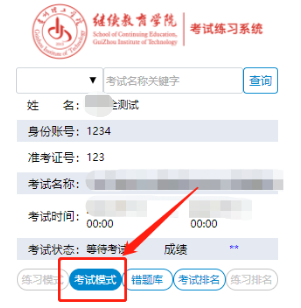 第二步,点击考试模式开始考试