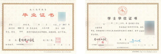 ④ 满足条件者可获取贵州理工学院颁发的毕业证和学位证。