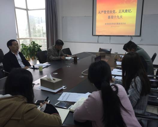 (本网讯 吴丹)10月16日上午9:00,继续教育学院全体教职工在成教楼301会议室开展了题为“从严管党治党、正风肃纪,喜迎十九大”专题教育活动。活动由继续教育学院党总支书记仇念华主持。