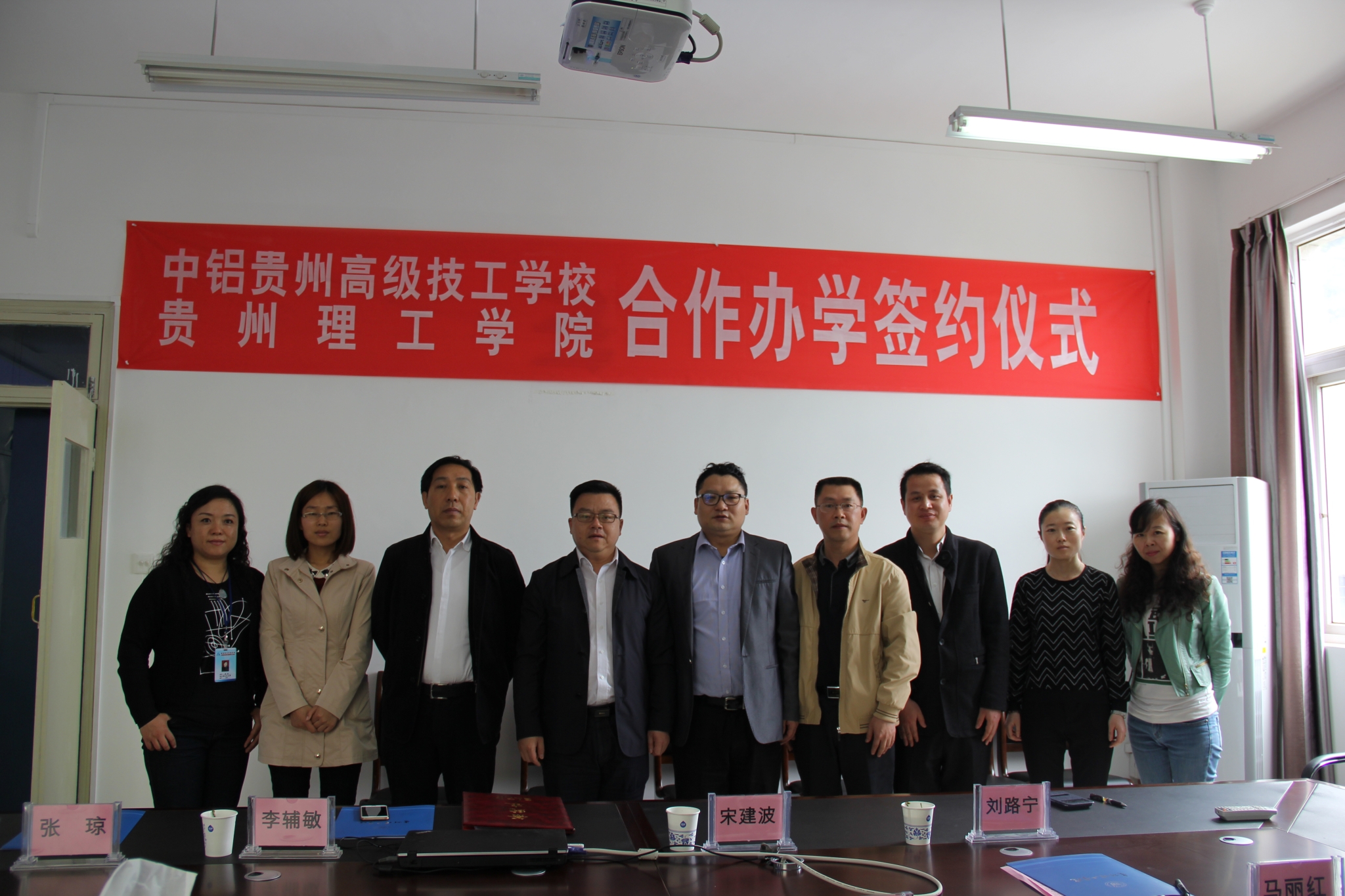 本网讯(继续教育学院 刘海林)4月6日上午,中铝贵州高级技工学校——贵州理工学院联合办学签约仪式在成教楼三楼会议室举行。中铝贵州高级技工学校校长李锐率学校综合办主任舒琦、学生处处长马丽红、招就中心副主任扈江参加签约仪式。贵州理工学院参加签约仪式的人员有:副校长宋建波、继续教育学院院长李辅敏、党总支副书记刘路宁以及相关科室负责人,签约仪式由刘路宁主持,副校长宋建波代表学校与中铝贵州高级技工学校校长李锐签署两校合作办学协议。