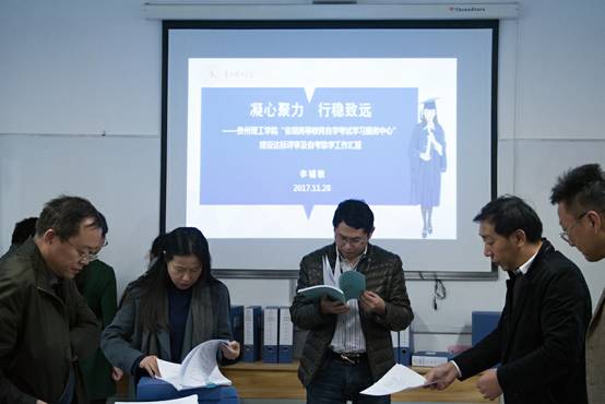 评审会由副校长梁杰主持,他代表学校对专家的到来表示热烈的欢迎,感谢省招考院及专家组对学校继续教育的关心和支持,并表示要以此次“省级高等教育自学考试学习服务中心”建设达标及自考助学工作评审为契机,全面贯彻落实习近平总书记在十九大报告中“办好继续教育,加快建设学习型社会,大力提高国民素质”精神,办好贵州理工学院继续教育,为贵州经济社会发展培养中国足球彩票应用型人才。