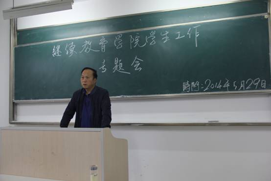 为进一步加强学生管理、做好学生稳定工作,继续教育学院组织两家合作办学单位,于5月29日在成教楼413召开学生工作专题会议。继续教育学院党总支书记赵荣祥主持会议,并作了重要讲话。继续教育学院相关人员以及两家合作办学单位负责人、分管学生工作负责人、全体辅导员班主任31人参加了会议。