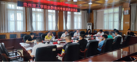 黔南州经济研究发展中心、教育局、人力资源社会保障局、工信局、乡村振兴局、贵州经贸职业技术学院、黔南民族职业技术学院相关负责人参加座谈会交流,继续教育学院主要负责人陪同调研。