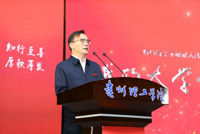 4月9日上午,以“我的大学,梦圆贵理工”为主题的贵州理工学院成人高等教育2023级新生开学典礼在蔡家关校区逸夫楼大礼堂隆重举行。本次开学典礼以现场和直播相结合的方式进行。贵州省教育厅职成教处副处长张禄海、贵州理工学院副校长张开智、继续教育学院院长陈筠、副院长肖利平,机械工程学院院长周知进、化学工程学院副院长黄宏升、经济管理学院副院长李静、食品药品制造工程学院副院长朱国飞、土木工程学院党总支副书记杨文斯及2名教师代表,14名2022级优秀学生,527名新生(其他新生线上参加)出席现场典礼。典礼由继续教育学院党总支书记刘路宁主持。