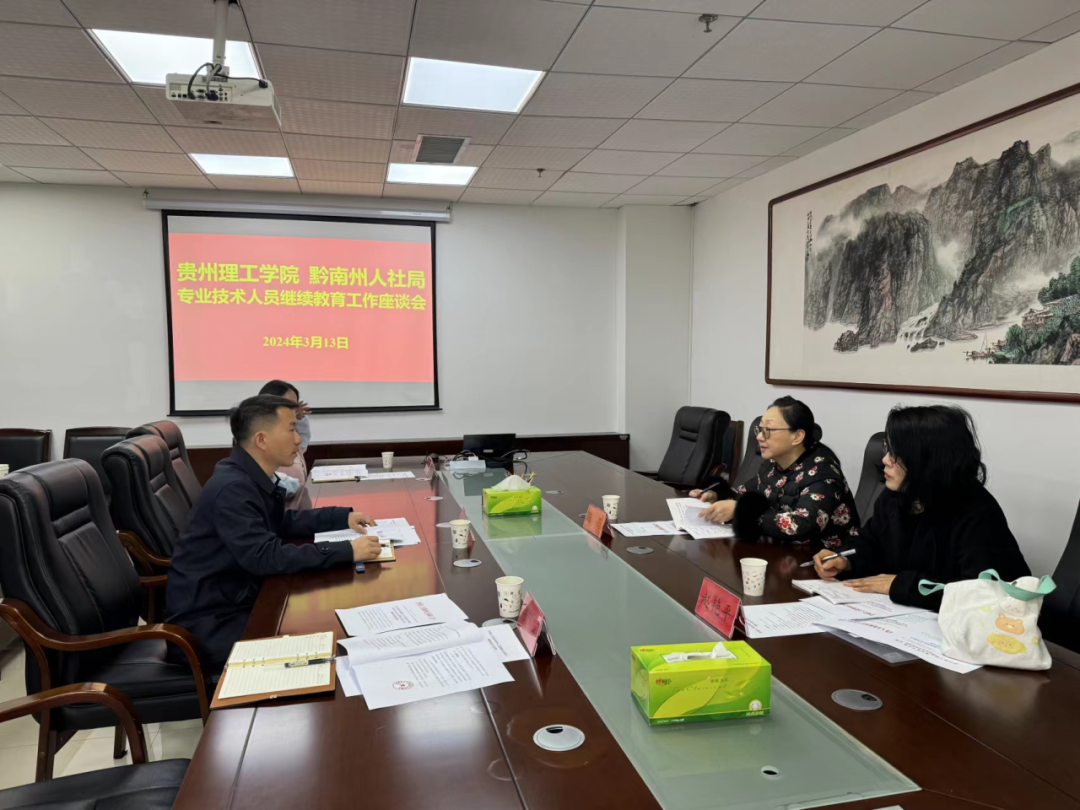 黔南州人力资源与社会保障局事业单位人事管理科相关人员和贵州理工学院继续教育学院非学历科负责人参加座谈。