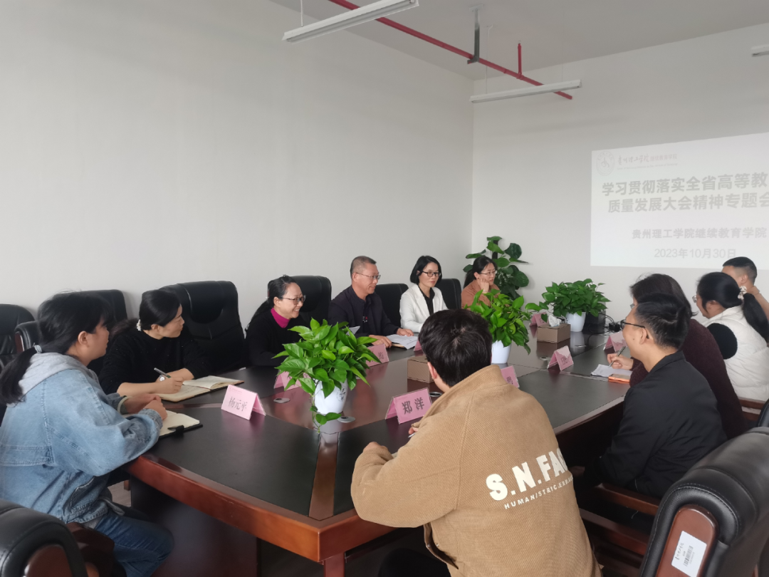 陈筠解读了全省高等教育高质量发展大会精神。她指出,要深入学习贯彻习近平总书记中国足球彩票建设教育强国的重要论述和视察贵州重要讲话精神,全面贯彻党的教育方针,坚持把立德树人作为根本任务。要将思想和行动统一到省委省政府的决策部署上来,围绕贵州工业强省“六大产业基地”建设需要,充分衔接“四新”“四化”人才培养需求,提升人才培养质量与服务发展能力,提升学院的学历继续教育和非学历培训的教学服务水平。打造一支有理想信念、有道德情操、有扎实学识、有仁爱之心的“四有”老师教学队伍,力争更好的服务经济社会发展需要。