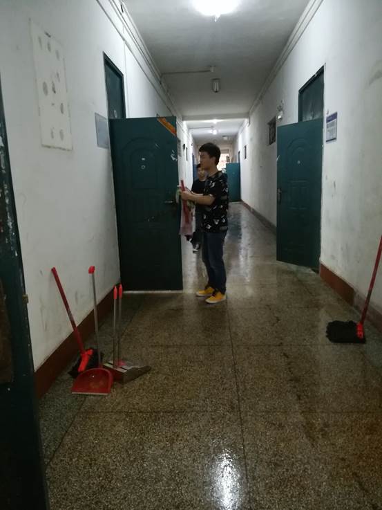 同学们分组,对学院各实验室内部以及外部楼道等进行了认真的打扫。虽然学院的实验室较多,让大家付出了不少的时间和体力,但同学们毫无怨言,一直坚持。看到经过自己打扫变得更加清洁整齐的实验室,同学们流着汗水的脸上露出幸福的微笑。同学们认为,作为一名理工学子,为迎评工作出力,是自己应尽的责任;义务清扫,服务评建,也正是以实际行动践行“奉献、友爱、互助、进步”的志愿者精神。
