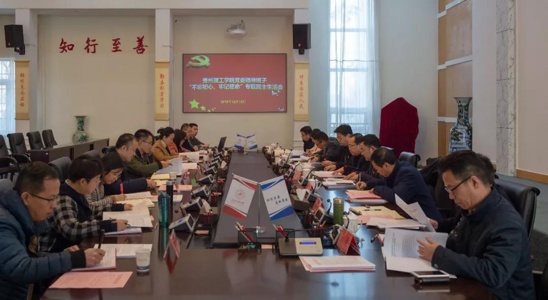 本网讯(党委宣传部 孟兰/文)12月10日上午,贵州理工学院在喀斯特会议厅召开党委领导班子“不忘初心、牢记使命”专题民主生活会。省委第十一巡回指导组组长、省委政策研究室一级巡视员吴吉祥,指导组成员、省生产力促进中心党委书记苏家建出席会议,校领导曾羽、苏向东、宋建波、胡兴灿、贺梦依、高勇参加会议,副校长梁杰、党群各部门主要负责人列席会议。会议由校党委书记曾羽主持。