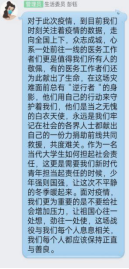 班会过程中,各班同学们围绕“疫情当前,我们该如何爱国”、“透过疫情,我们看到了些什么”和“我想分享的疫情故事”展开热烈的讨论交流,纷纷表示,在疫情面前,我们看到了在以习近平同志为核心的党中央坚强领导下,全国上下万众一心,众志成城,疫情得到有效防控,也看到了一线医护工作者为打赢这场战“疫”所做出的巨大贡献。同学们说,我们虽不能像他们一样奋战在一线,但可以自觉做到服从学校安排,在家认真学习,为今后步入社会奠定基础,将来也要像他们一样为祖国繁荣昌盛做出自身应有的贡献。