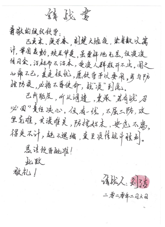 我相信,在党和政府的领导和努力下,疫情会很快得到控制;我相信,在人民群众的支持和配合下,疫情会很快结束;我相信,大家众志成城,万众一心,这场战“疫”会很快夺得胜利!