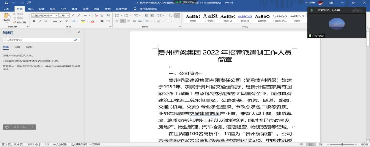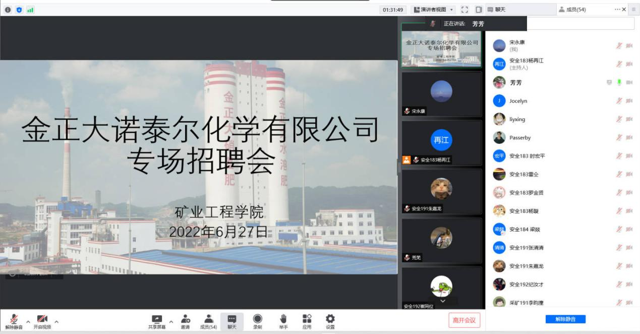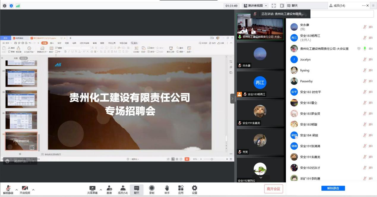 本网讯(宋永康) 2022年6月27日,我院携手金正大诺泰尔化学有限公司、贵州化工建设有限公司、深圳顺络电子股份有限公司和贵州桥梁建设集团有限责任公司,通过腾讯线上会议的形式组织开展专场招聘会,提供就业岗位15个。我院2018级和2019级50多名同学参与了本次线上招聘会。